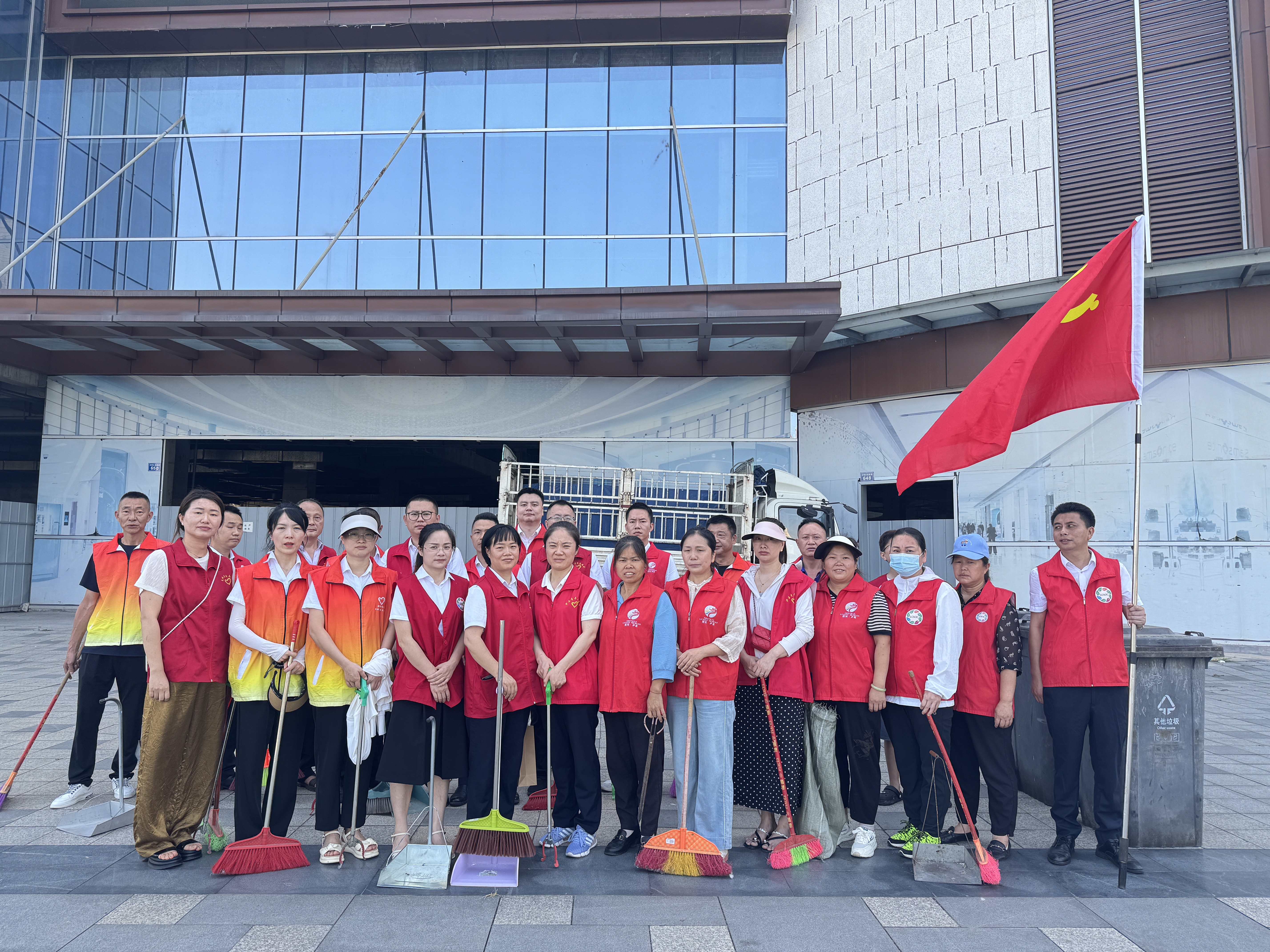 活動(dòng)伊始,朝陽(yáng)社區(qū)黨委書記對(duì)活動(dòng)背景與意義進(jìn)行深入闡述,并向匯興集團(tuán)黨員同志的積極響應(yīng)致以誠(chéng)摯謝意。隨后,全體人員跟隨黨旗,來(lái)到打掃區(qū)域。根據(jù)區(qū)域特性分為兩組,一組負(fù)責(zé)友豪商圈外圍環(huán)境清理,另一組專注商圈內(nèi)部清潔工作?;顒?dòng)中,黨員志愿者們手持掃帚、鏟子等工具,仔細(xì)清理路面垃圾、衛(wèi)生死角。經(jīng)過(guò)大家的努力,臟亂的友豪商圈內(nèi)部環(huán)境得到有效清理。